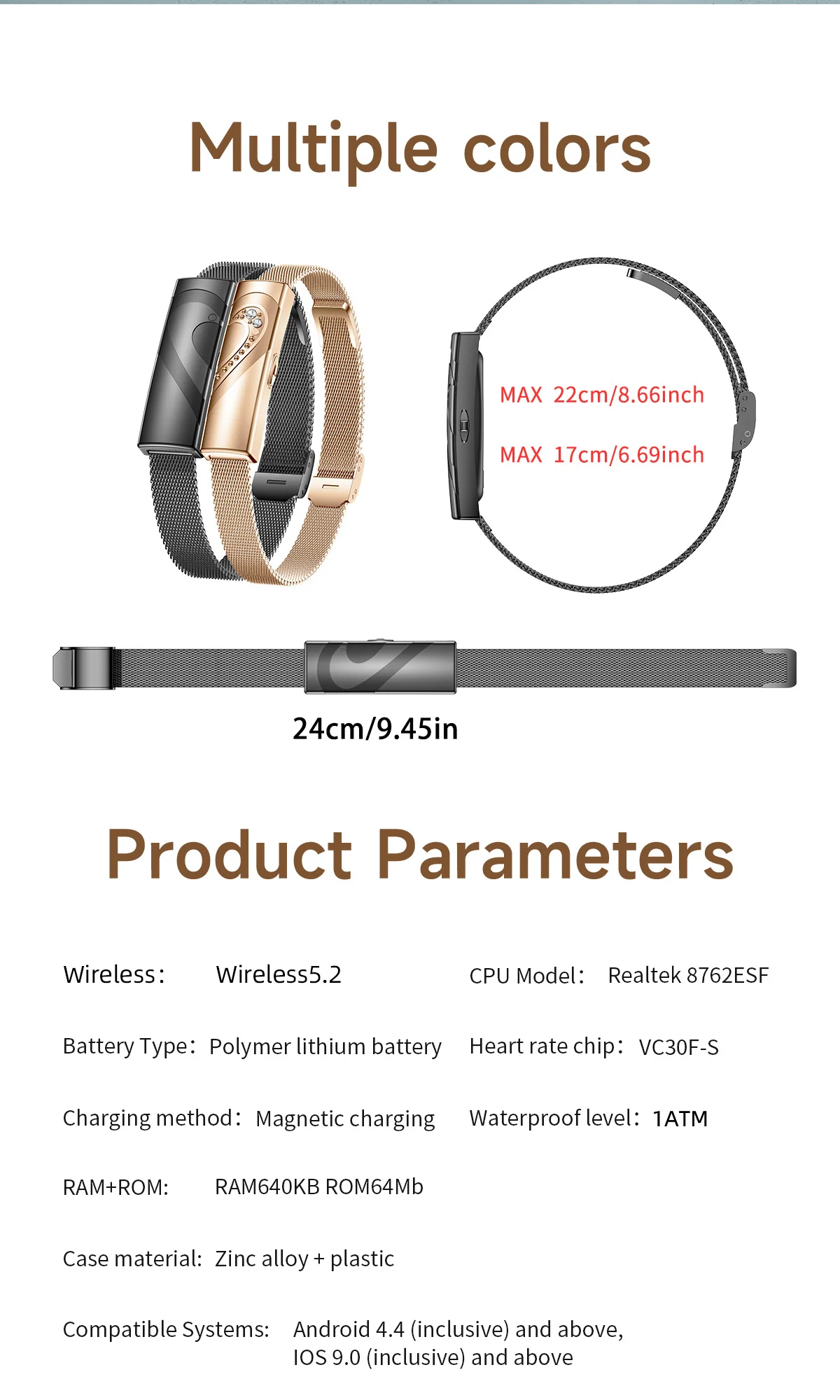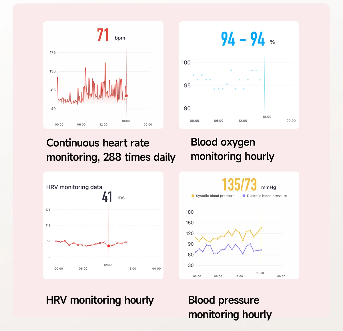Metrics measured: Heart Rate Monitor,Women's Health Monitoring,Blood Oxygen Monitor,Sleep Monitor,Other,Stress Monitor